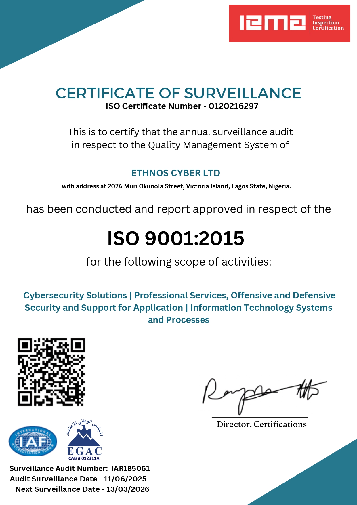 Ethnos Cyber is a Nigerian-born cybersecurity firm helping organizations across Africa prevent, detect, and recover from digital threats. For over a decade, we've combined deep technical expertise with localized insight to secure businesses, governments, and critical infrastructure.